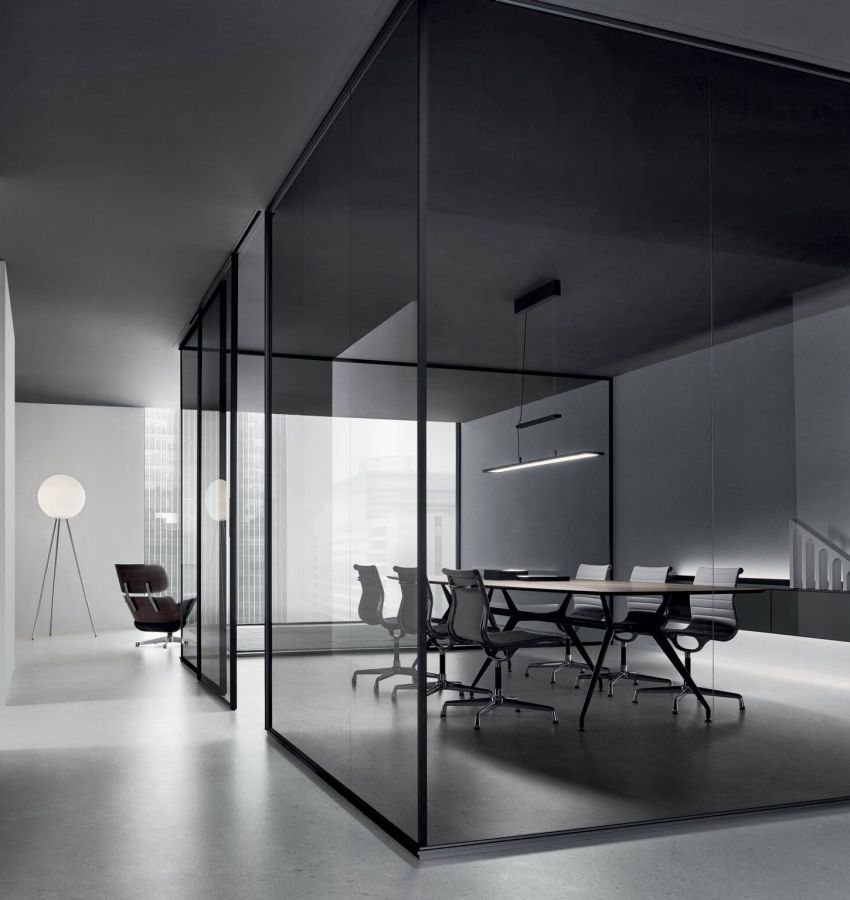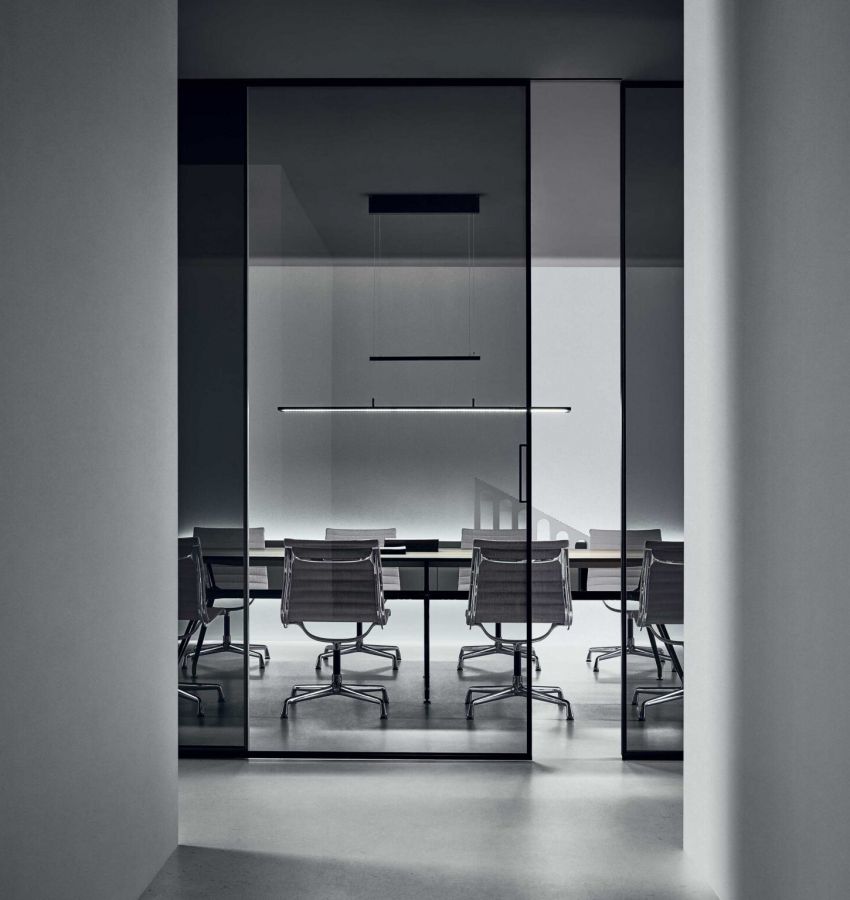 Spazio - система межкомнатных перегородок из стекла, изготавливаемых по размерам заказчика, эта система включает линейные, угловые и терминальные элементы, позволяя находить самые неожиданные решения для внутренней организации пространства, будь то домашние или офисные помещения. Благодаря универсальности дизайна системы Spazio, с ней свободно сочетаются раздвижные и распашные двери Moon, Sail и Zen. Разнообразие сочетаний отделок структурных алюминиевых элементов и оттенков стекла вдохновляет на поиск неординарных решений.