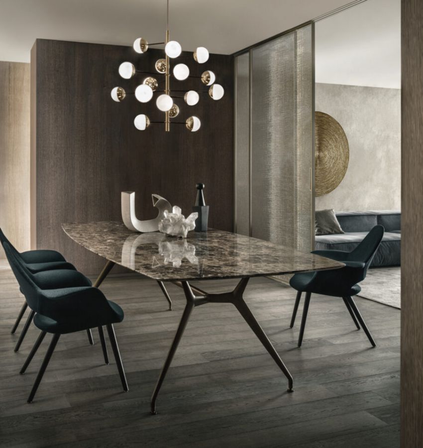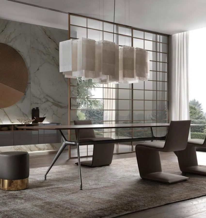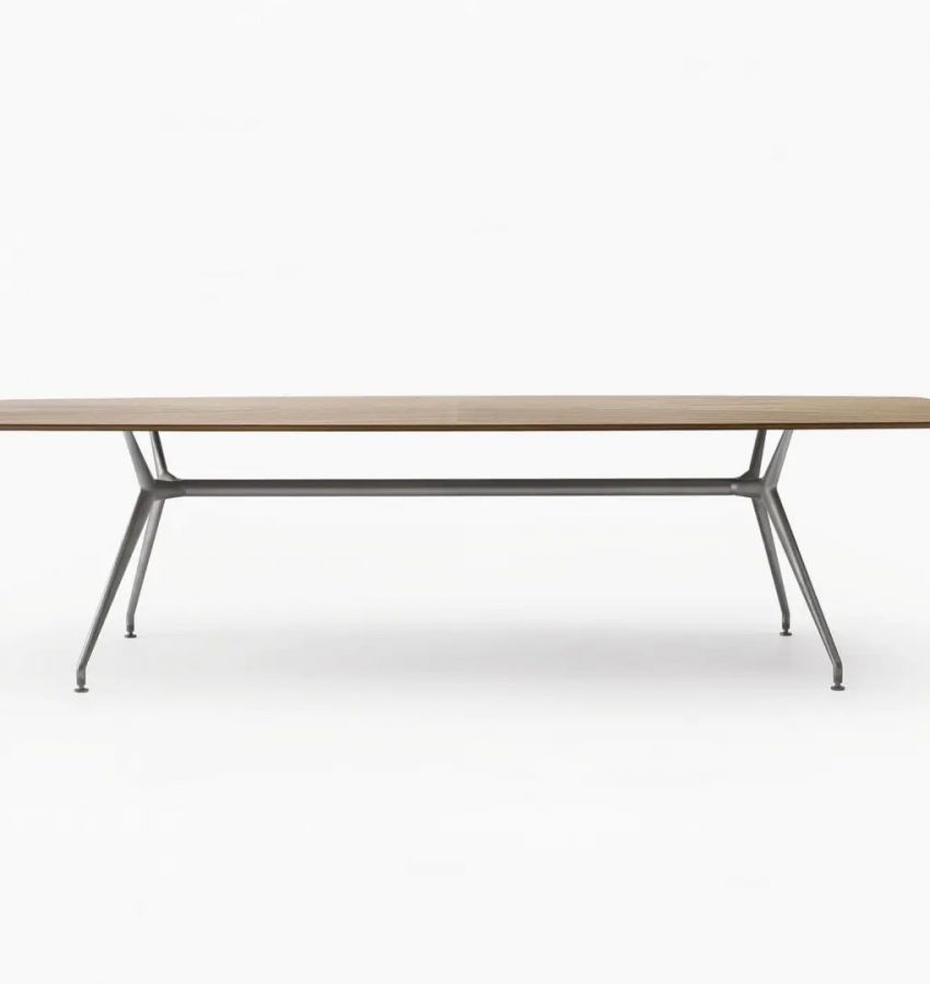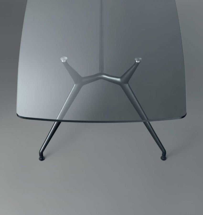 Система столов Manta четко отражает приверженность Rimadesio к достижению эстетической оригинальности через исследования и технологические инновации. Модульная конструкция из литого алюминия и центральная опора из закаленного алюминиевого сплава обеспечивают максимальную надежность и позволяют использовать профили минимальной толщины, в то время как модульная концепция конструкции позволяет изготавливать инновационные столешницы больших размеров.