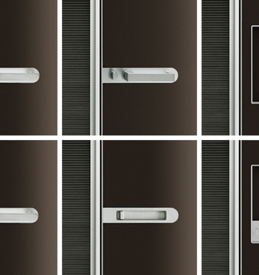 Ручки как распашной, так и раздвижной версии характеризуются полной интеграцией между блоком ручки и стеклянной панелью, которые образуют единую непрерывную поверхность.