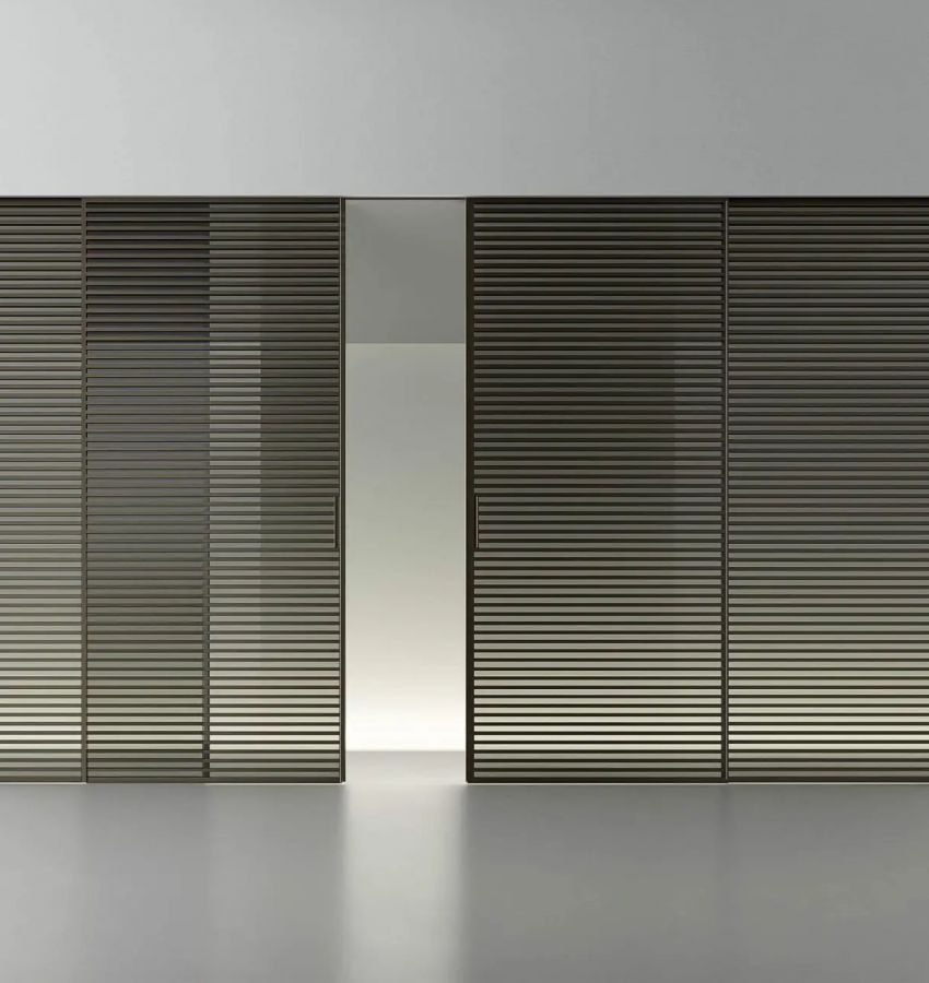 Поперечные траверзы, являющиеся отличительной чертой модели Stripe, расположены с обеих сторон дверей. Такой двусторонний дизайн делает данную дверь отличным решением для любого помещения в доме, как в дневной зоне, так и в зоне спальни, а также для офисных помещений. Это решение с ярко выраженным графическим дизайном, где свет, проходя через траверзы всякий раз образует визуально новый рисунок в зависимости от угла обзора.