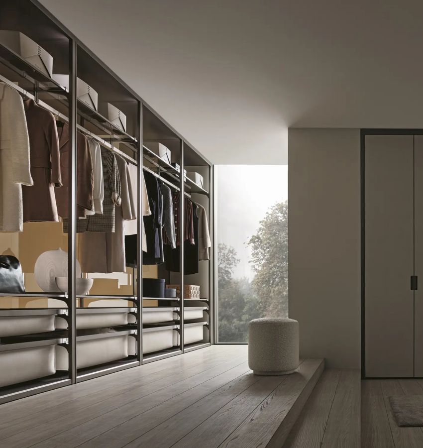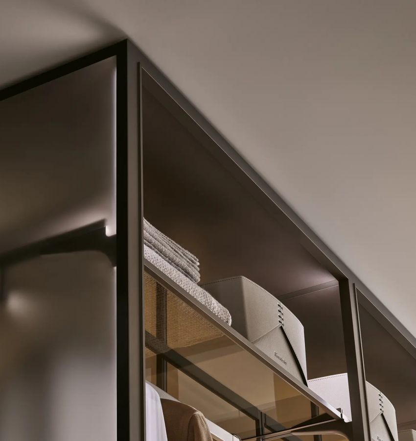 Композиция Cover Freestanding: алюминиевый каркас цвета «piombo», двери из матового лакированного стекла цвета «grigio ombra»