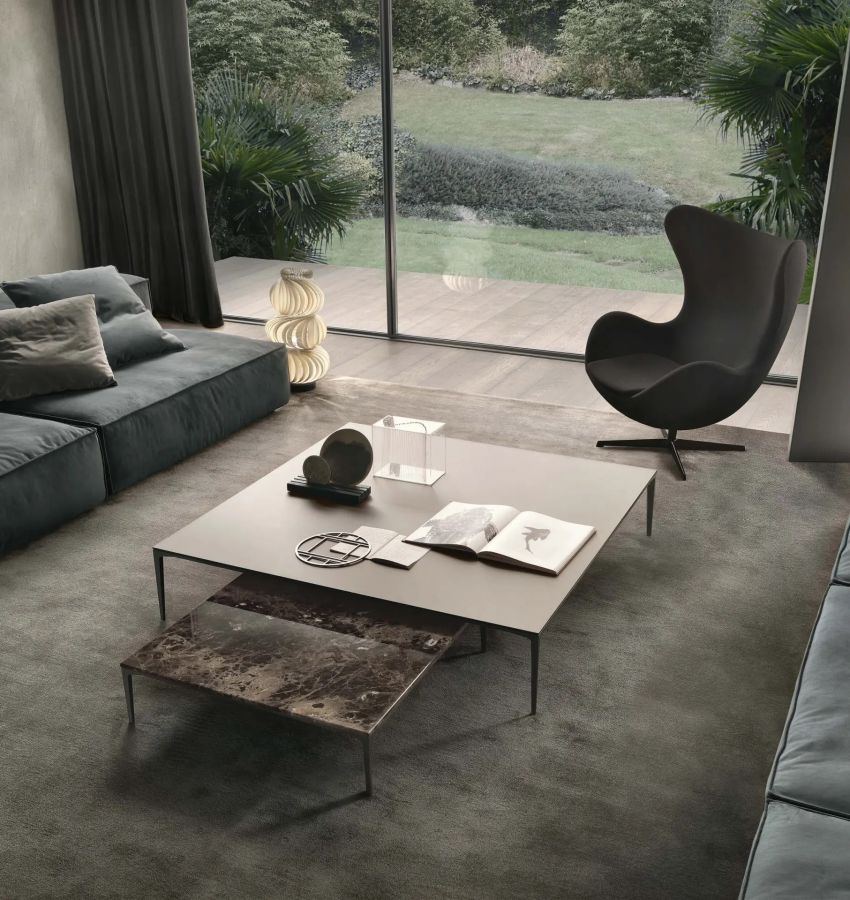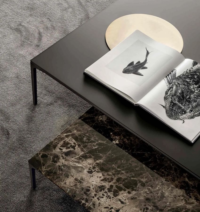 Фабрика предлагает столики Tray в нескольких вариантах, различной высоты и размеров. Для этой серии доступны различные отделки из коллекции фабрики. Столики отличаются исключительно универсальным дизайном и прекрасно приспосабливаются к нуждам владельца в любом помещении - от гостиной до спальни. Столешницы из окрашенного стекла, мрамора или в отделке шпоном ореха с инкрустацией, великолепно сочетаются с алюминиевой структурой.