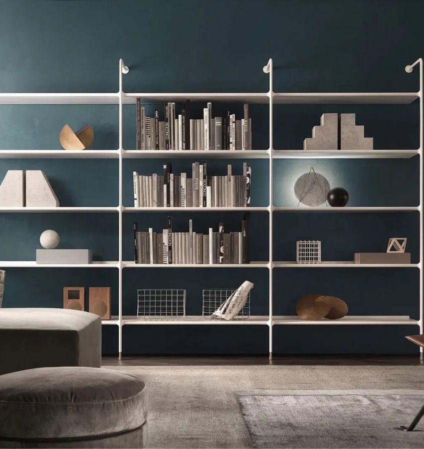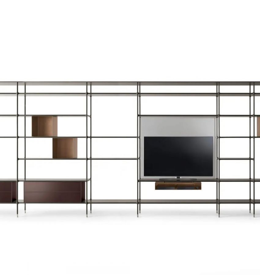 Это архетип библиотеки в новой интерпретации Rimadesio: модульная система Wind сочетает в себе визуальную легкость и технологические инновации. Ключевой особенностью данной серии, целиком изготовленной из алюминиевых элементов, являются соединения полок из экструдированного алюминия со штампованными алюминиевыми стойками, в центральной и терминальной версии. Вертикальное расположение модулей серии Wind выполняется с помощью специальных уплотнительных соединений из нейлонового волокна, закрепленных в стойках и обеспечивающих максимальную устойчивость. Верхним терминальным элементом каждой композиции является окрашенный стратифицированный топ из мдф, с обеих сторон облицованный двойными алюминиевыми пластинами.